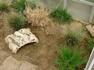 Die Gräser am hinteren Teil des Gewächshauses wachsen jedes Frühjahr von allein wieder nach.
