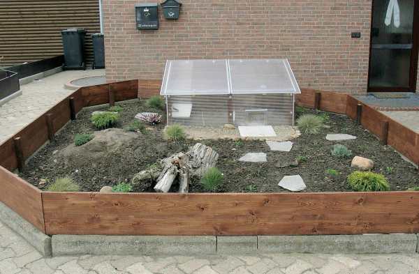 Gehege für die Nachzuchten der europäischen Landschildkröten. Rechts eine Aufnahme